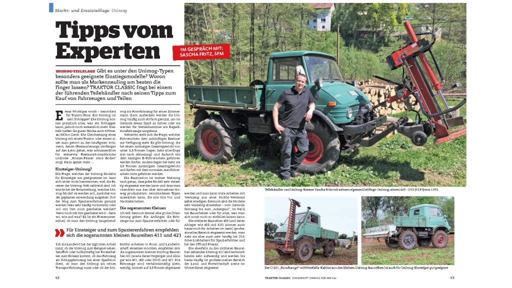 Sonderheft UNIMOG und MB-trac mit Interview von Sascha Fritz Das allseits bekannte Magazin Traktor Classic hat im Mai 2021 zum 75jährigen Unimog Jubiläum ein Sonderheft über Unimog und MB-trac herausgebracht. Im Heft ist ein ausführliches Interview mit Sascha Fritz zur Ersatzteilversorgung in der Unimog Welt abgedruckt. Das wollen wir Ihnen nicht vorenthalten: Insgesamt ist das Sonderheft […]