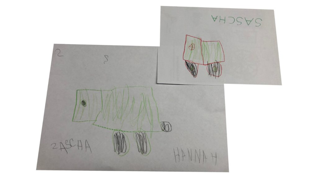 Heute hatten wir ganz lieben Besuch von der 5jährigen Hannah, die uns gleich zwei Unimog gemalt hat. Einer sogar mit Anhängerkupplung, wie sich das gehört! 🙂