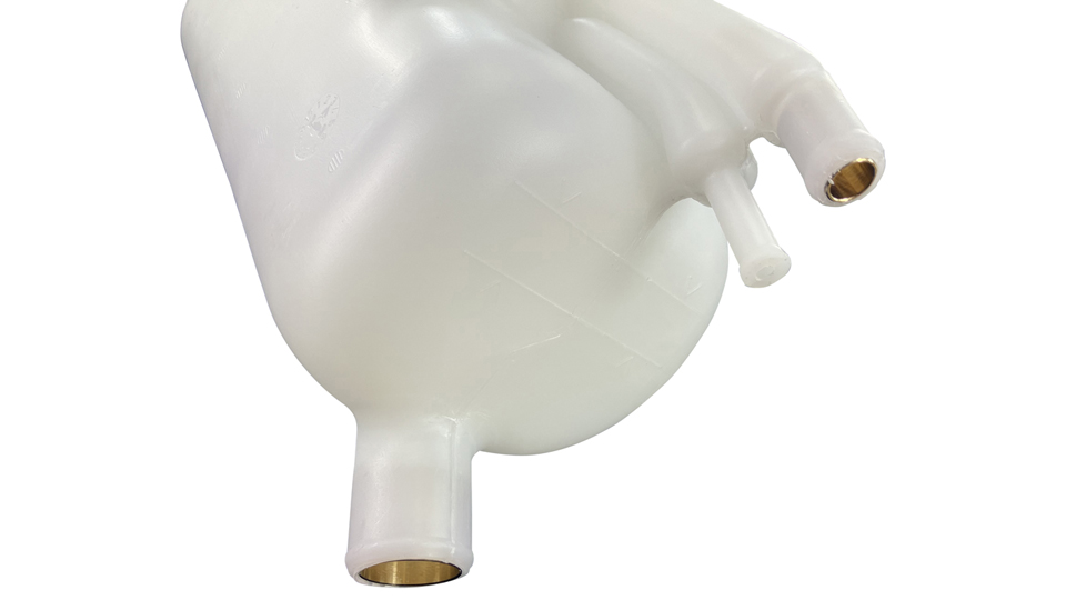 Der Behälter hat vier Schlauchanschlüsse, davon sind zwei Metallverstärkt. Der Einfüllstutzen ist ebenfalls verstärkt durch eine Metalleinlage. Auf der Stirnseite des Behälters befindet sich eine Min-/Max-Markierung.