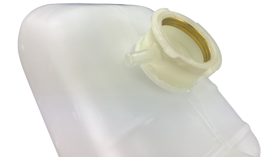 Ausgleichbehälter der Kühlflüssigkeit aus Kunststoff.