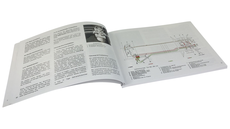 Das Buch enthält auf 136 Seiten neben den allgemeinen Erklärungen zu Funktion und Bedienung des Mogs, auch extrem nützliche technische Informationen rund um das Fahrzeug wie beispielsweise Wartungsintervalle, Schmierstofftabelle, Betriebsmitteltabelle, Fahrzeugabmessungen, Elektroschaltplan usw.