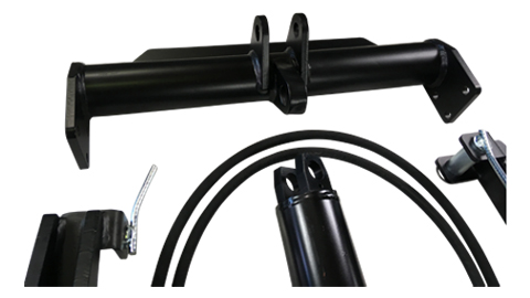 - Der Hubzylinder wird am Galgen befestigt. Dieser wiederrum wird an den vorderen Anbauböcken des Mogs montiert