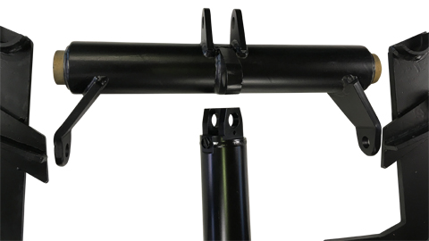 - Der Hubzylinder wird am Galgen befestigt. Dieser wiederrum wird an den beiden mitgelieferten seitlichen Haltern befestigt.