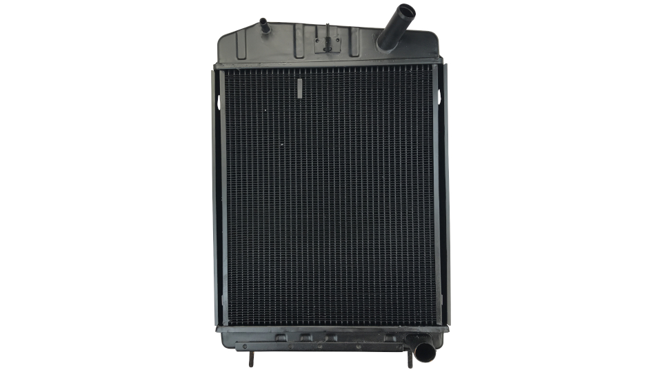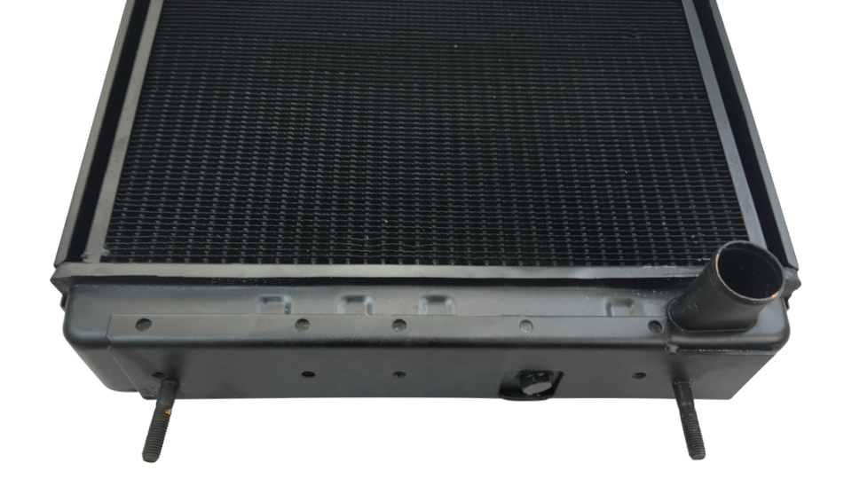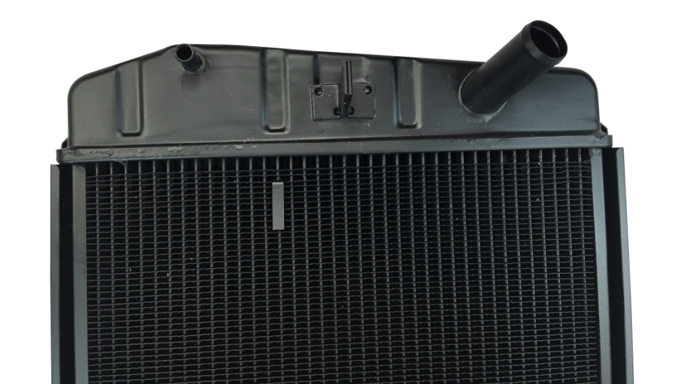 ACHTUNG! Sehr frühe Unimog 421 hatten einen anderen Kühler verbaut. Kontrollieren Sie VOR dem Kauf, ob nachfolgende Abmessungen des Kühlers und der Schlauchstutzen sowie die Anordnung der Schlauchstutzen mir Ihrem alten Kühler übereinstimmen!