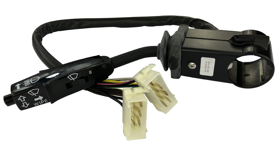 Schalter zur Befestigung am Lenkstock für Blinker, Scheibenwischer, Hupe und Fernlicht.