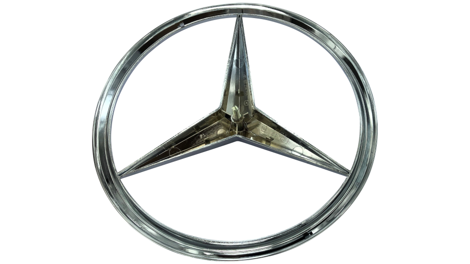 Mercedes Stern mit einem Durchmesser von 260 mm in der verchromten Ausführung.