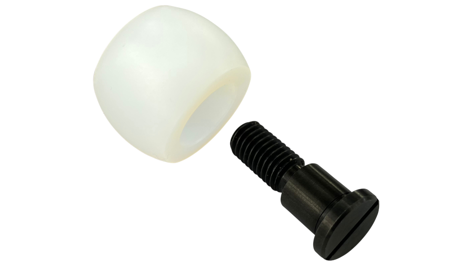 Rolle, die am Umlenkhebel des Fußgases sitzt. Die alte Rolle ist meistens einseitig abgeschliffen und muss dann erneuert werden.